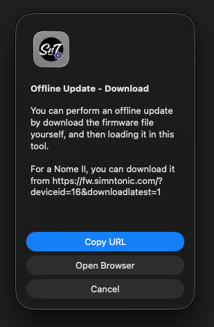PS: the issue should be fixed but more importantly the tool now also has an "offline" mode where you can update your Nome even without an internet connection. This mode will only be available on the Firmware Update tool.