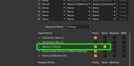 Hey there. I'm just a dumbdumb trying to figure out how to correctly set this up so that Nome is the master clock and Live follows its clock. A lot of the documentation seems to be geared for people wanting to do it the other way around, which seems to defeat the purpose. It works fine bidirectionally but I'm still using Live's clock. Can some kind person give me a hint on what settings are needed both in Live and the Nome? I have it setup correctly as a control surface. When I config Ableton to follow an external clock it appears to be receiving it, but doesn't receive the start message. I'm so confused so please be kind!! :)