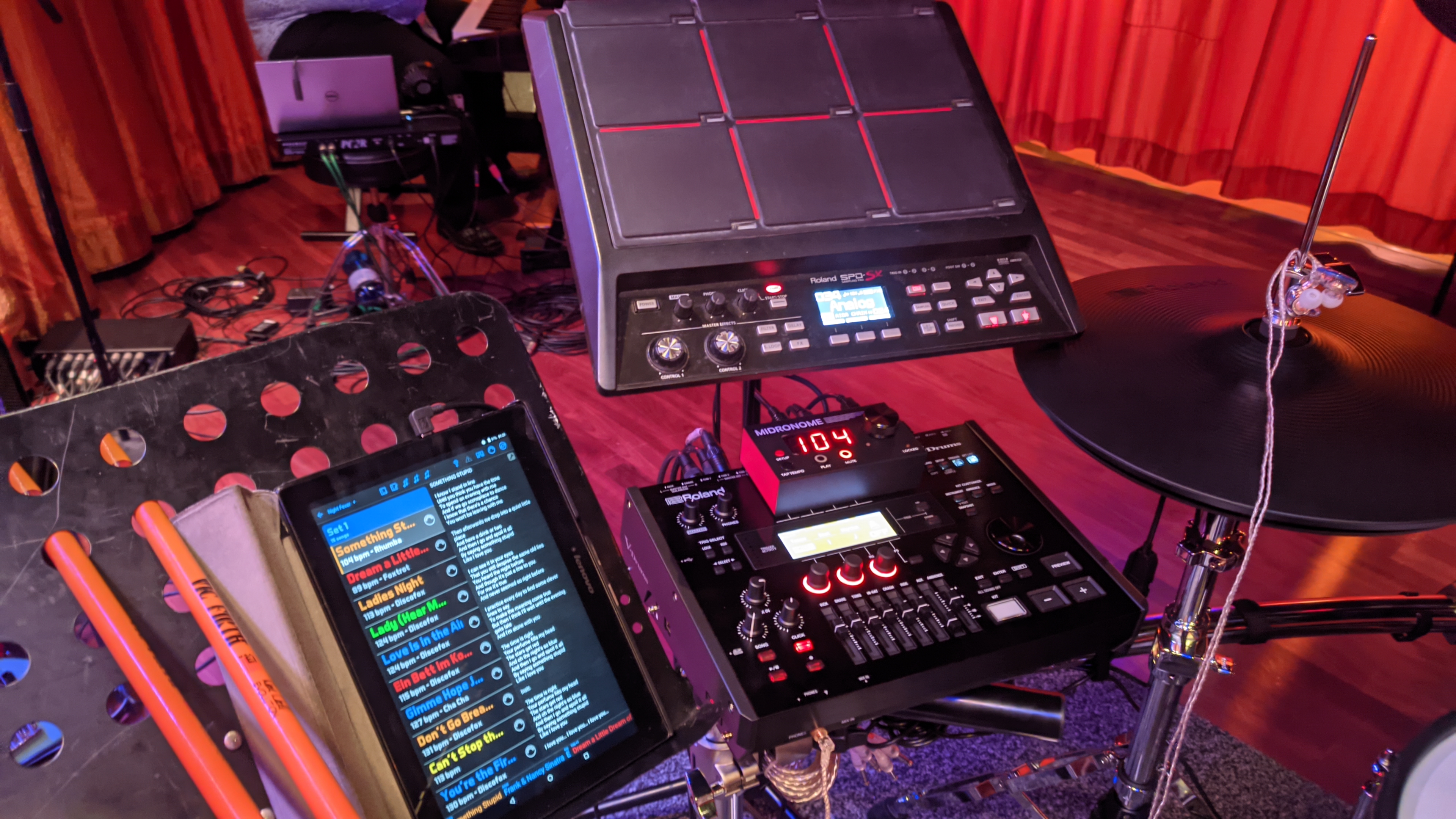 I took advantage of building a brand new TD50KV2 for the ship, so I can showcase how my usual setup looks with the added midronome and tablet. Note, the midronome now sits atop of the drum module, obstructing few function buttons, but nothing essential for performance.